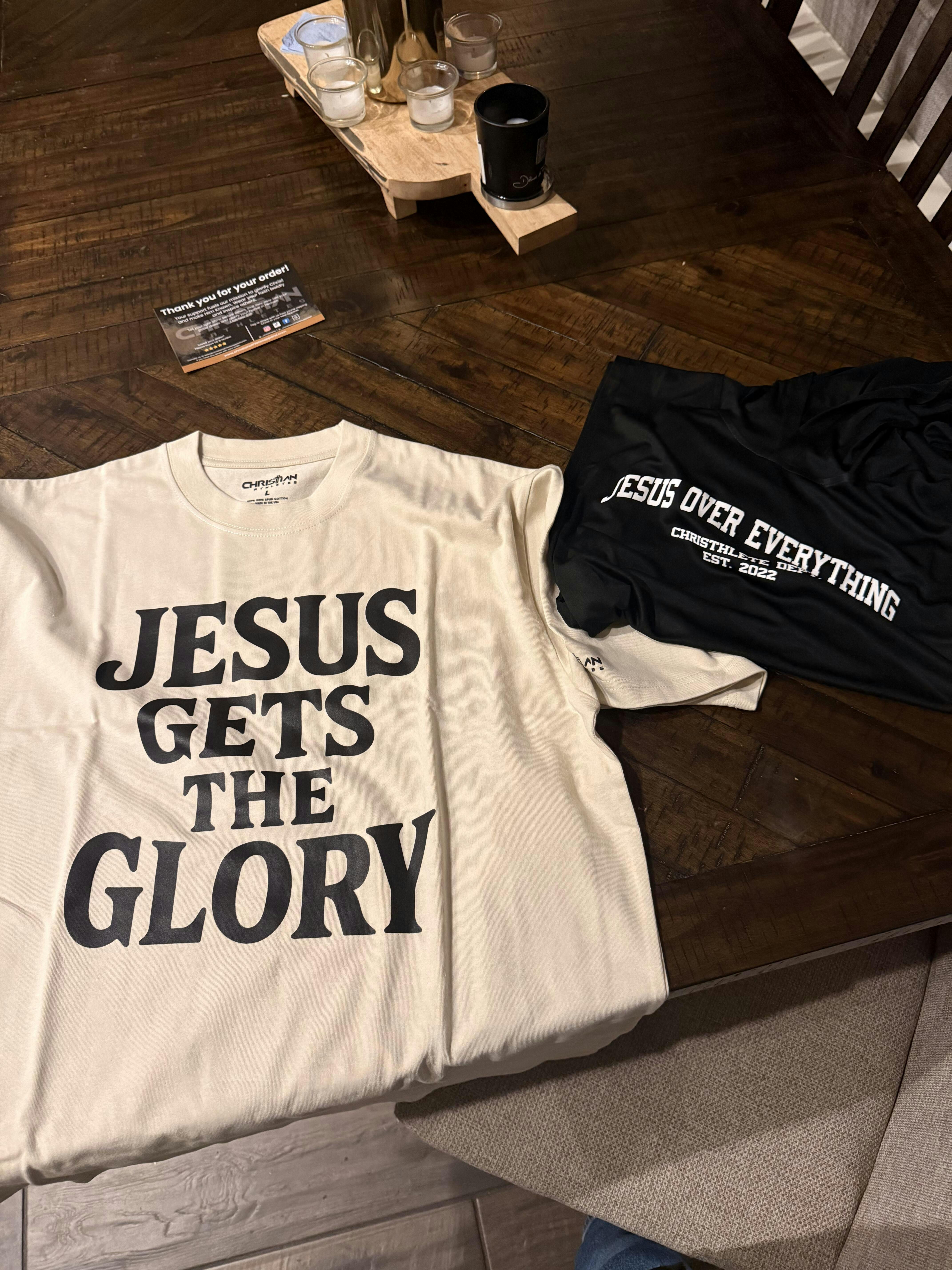 Jesus Gets The Glory Tee Beige (Made for the bold in Christ)
